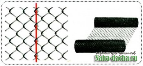крепление сеткиПри установке забора из металлической сетки требуется скреплять полотнища между собой. Надежнее всего это сделать, если пропустить через крайние ячейки скрепляемых полотнищ отрезок прямой проволоки.
