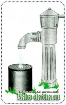 Размытая от воды земля возле крана или колонки на садовом участке порядком мешает. Решить эту неприятность труба-от-стойник, вкопанная под краном. Затяните ее верх сеткой: мыть овощи и фрукты станет гораздо зручнее, а при умывании и мытье рук ни мыло, ни зубная щетка не провалятся в трубу.
