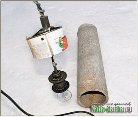 Оптимальный вариант родился внезапно - обычную лампочку установить в асбоцементную трубу. И дешево, и безопасно!