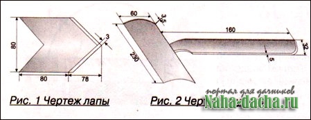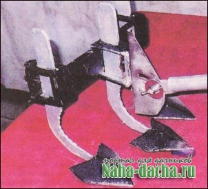 Вместо лап на приспособлении можно монтировать окучник (рис. 2).