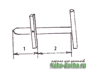 Это «оружие» состоит из столбика (круглого в сечении, диаметром 8-10 см), заточенного с одного конца. Его длина подбирается по росту работника - столбик ему должен быть примерно по грудь. На столбике укреплены две перекладины