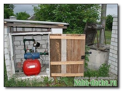 Устройство нужно устанавливать как можно ближе к стенке колодца, чтобы при отключении электричества иметь возможность беспрепятственно доставать воду воротом.