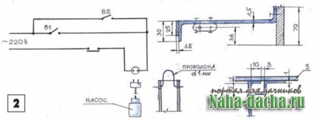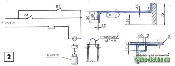 рис. 2. Она состоит из одного микропереключателя и двух выключателей. Один из них установлен в доме, другой — у колодца. Для подачи воды в желаемое место необходимо открыть вентиль полива или кран в доме и включить насос соответствующим выключателем.