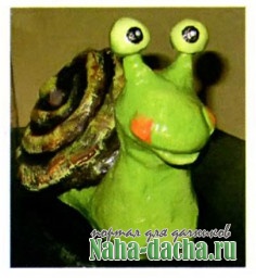 5. Примерно через 1-1,5 часа продолжаем работу. Формируем «колбаски» и накладываем на основу раковины по спирали (можете придумать свою форму раковины). Затем макаем плоскую кисточку в воду и заделываем стыки между «колбасками», то есть исправляем погрешности.