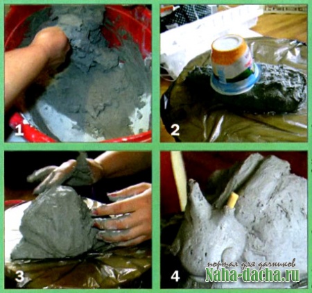 4. На место шеи вставляем пластиковую палочку (деревянная не подойдет, сгниет со временем), аккуратно покрываем ее смесью. Оставляем немного подсохнуть, подставив что-нибудь под шею, чтобы она не наклонялась.