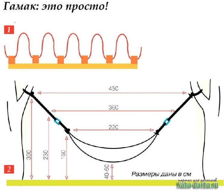 гамак своими руками Простые правилаДля комфорта и безопасности при подвешивании гамака следует соблюдать следующие правила