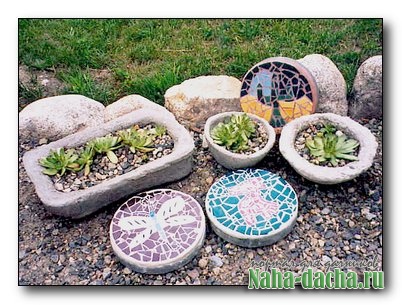 Подготовила все необходимые инструменты — шпатель, металлическую миску, плиточный клей для наружных работ, молоток — и приступила к работе. Сначала попыталась ровно резать плитку стеклорезом, но оказалось, что это очень сложно. Наверно, нужно иметь определенные навыки. Тогда я взяла обычный молоток и стала просто разбивать им плитки. Получались разные по форме и размеру кусочки.