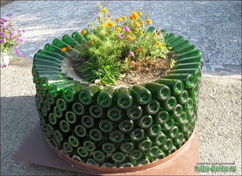 Если возле вашей дачи нет постоянно действующего пункта приема стеклотары, то вопрос утилизации пустых бутылок рано или поздно превратится в настоящую проблему. Попробуйте подойти к делу творчески, и вы увидите в стеклянном мусоре немалый потенциал для оформления дачного участка.