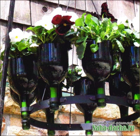 из стеклянных бутылок своими руками Да будет свет!Из пустой стеклотары мастерят садовые светильники всевозможных форм и конструкций — от простеньких подсвечников до сложных «многорожковых» люстр и светильников на солнечных батареях. Главная трудность - разрезать бутылку на две части и отшлифовать острые, как бритва, края, чтобы никто о них не поранился. В дело можно пустить обе половинки. Из донной части получаются стаканчики и подсвечники, верхушка с горлышком применяется как рассеиватель (абажур) светильника. Закрепите горлышко на деревянной или металлической основе, установите внутрь свечу-таблетку или лампочку, и садовый светильник готов!