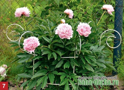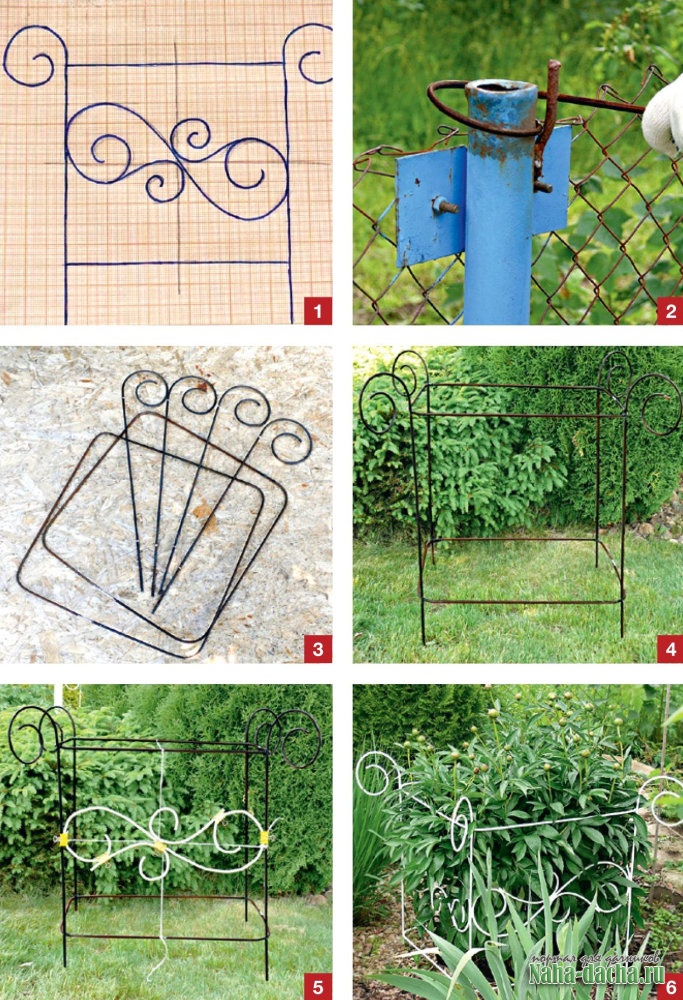 Под тяжестью распустившихся цветов пышные кусты пионов норовят развалиться, особенно после дождя. В продаже есть готовые сборные пластиковые опоры, но можно попробовать смастерить прочную и красивую сварную металлическую опору самостоятельно