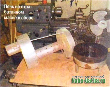 Бесспорный плюс этой печи, топливом для которой служит отработанное масло, - простота. Для её изготовления нужны лишь чёрная листовая сталь, общедоступное слесарное оборудование и электродуго-вая сварка - то, что всегда есть в любой автомастерской. В конструкции нет сложных и высокоточных деталей (дозаторов, капельниц, форсунок, поплавковых камер, насосов) и подвижных деталей, не считая поворотной заслонки, регулирующей подачу воздуха. То есть в процессе работы здесь практически нечему ломаться. Малая масса и возможность разбирать нижнюю часть облегчает профилактический осмотр и обслуживание печи.