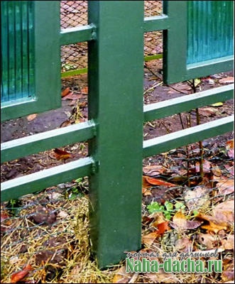 3. Забор не должен быть сплошным. Нужна вентиляция воздуха, быстрое таяние снега около забора, отсутствие тени. Понизу мы натянули тонкую сетку (50 см) в зеленой облатке.