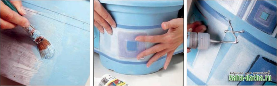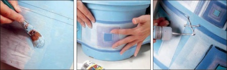 Совет: контейнер можно украсить не только обоями, варианты декора могут быть любыми в зависимости от вашего вкуса: фактурная штукатурка, декупаж, роспись и даже декоретто.
