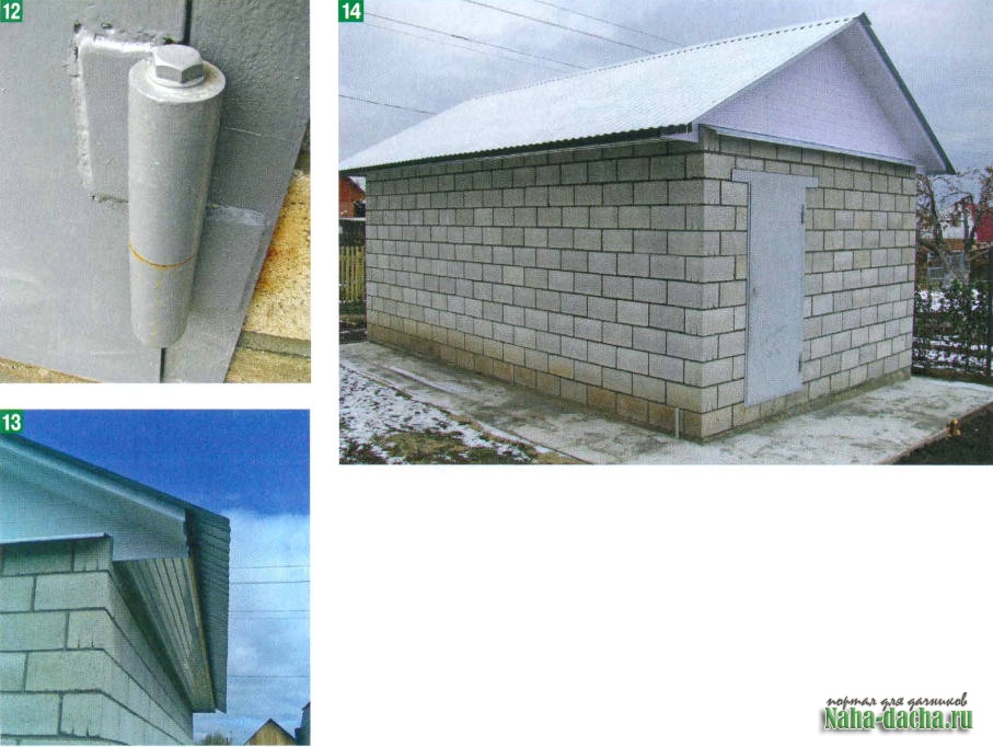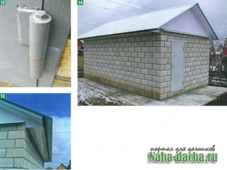 За лето 2013 года я построил гараж размерами 6,5 х 4 м на ленточном фундаменте. Стены сложил из пенобетонных блоков, двускатную крышу накрыл волнистыми металлическими листами. К сожалению, осень всегда наступает быстро, и сделать ворота и входную дверь тогда не успел. Только проёмы фронтонов закрыл на зиму рубероидом.