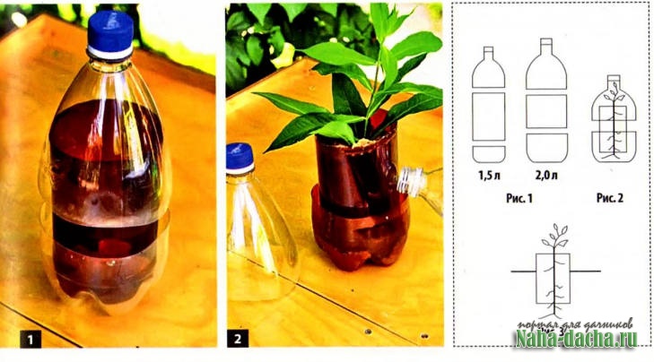А потом соединяю все эти детали вместе (рис. 1 и 2). Что это дает? Ну, во-первых, в таких емкостях очень удобно поливать растения.