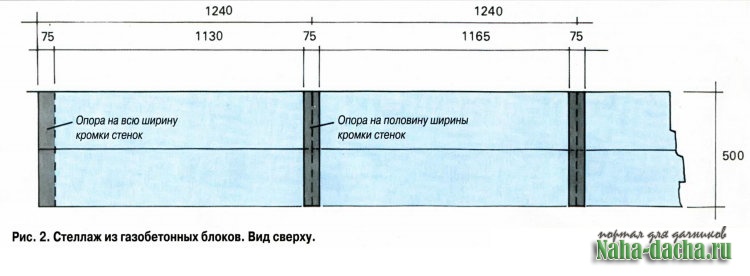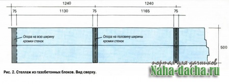 Стеллаж из газобетона Рис. 2. Стеллаж из газобетонных блоков. Вид сверху.