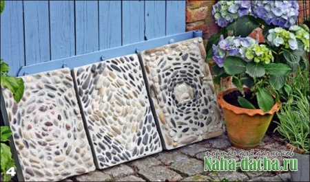 Мозаика из морских камушкевВыносливость, долговечность и разнообразие делают гравий идеальным материалом для создания потрясающих мозаичных композиций. Камешки разных оттенков, размеров и форм — отличная основа для креативных узоров или целых картин. Даже просто укладка одинаковых по цвету и габаритам камней вдоль или поперек узора выглядит как произведение искусства. Сам процесс создания мозаики очень увлекателен, но требует терпения, фантазии и времени. Вам этого не занимать? Тогда за дело! Рекомендуем сначала выложить узор на песке, воспользовавшись разными шаблонами, и только затем перенести мотив на «подушку» из раствора. Уверены, что у вас глаз — алмаз? Делайте чудо-мозаику без прикидок!
