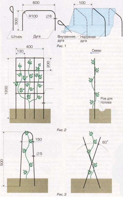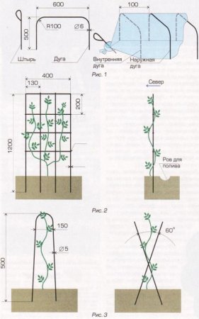 Крепеж изготовляется из стальной арматуры. Он долговечен, удобен в монтаже, многоцелевой. Стойки можно использовать для выращивания томатов, огурцов, фасоли и других вьющихся растений. Их можно также применять как временное укрытие, защищающее всходы от весенних заморозков.