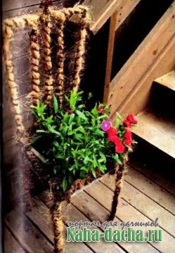 Садовый экспромт Использование стульев-подставок позволит вам создать садик там, где не удается разместить традиционные клумбы и миксбордеры. Стул можно поставить на открытой веранде и в саду под яблонями, на мощеной площадке у дома и на зеленом газоне. Переносные цветники могут все лето кочевать по саду, обновляя то один, то другой его уголок. Кроме того, это отличное средство декорирования. Мобильными вазонами с пышной растительностью и яркими цветами можно замаскировать портящие окружающий вид детали: канализационные люки, обшарпанную стену сарая, мусорные ящики.