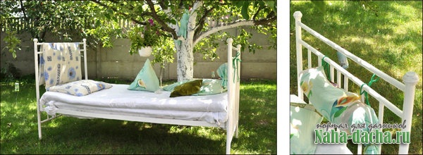 Торопясь насладиться последними теплыми деньками, устроили в саду уютное местечко для отдыха (фото 1 ). Пригодилась железная кровать, доставшаяся от прабабушки.