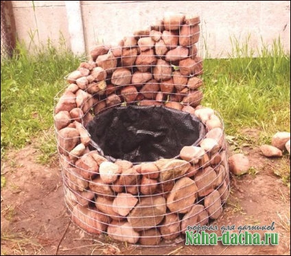 Понадобилось: сетка арматурная, камни, черная пленка, клещи арматурные.