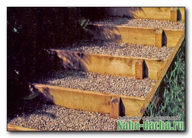 1. Из двух досок делают косоуры. Их разметка показана на фото. Из трёх других выкраивают ступени, а ещё из одной — полку, в полость над которой можно установить выдвижные ящики. Ступени крепят шурупами к косоурам, используя вспомогательные бруски сечением 20 x 20 мм.
