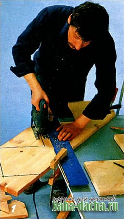 Чтобы изготовить эту ступенчатую подставку для цветов, потребуются струганые сосновые доски (лучше — клеёные) шириной 300 мм, которые раскраивают до длины 1 180 мм.