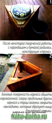 • Технологичность. Конструкция «трона» должна быть простой в изготовлении. Материалы — по возможности недорогими и желательно из отходов, оставшихся после строительства.
