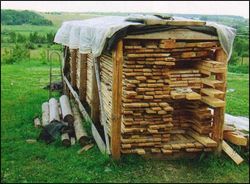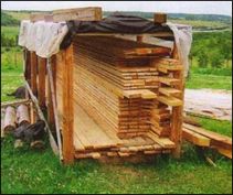 Обычно привезённые пиломатериалы, которые должны быстро пойти в работу, складывают вблизи строительной площадки, особенно не заботясь об их защите от осадков. Так, несколько лет назад рабочие, занимавшиеся отделкой нашего только что построенного дома, оставили на улице половые доски (довольно хорошего качества и сухие), не распаковав их, да ещё и укрыв сверху полиэтиленовой плёнкой. Несмотря на то, что погода стояла сухая и дождей практически не было, из-за росы и конденсата, образующегося на внутренней стороне плёнки, всего за несколько дней доски не только увлажнились, но многие из них ещё и повело. В результате полы сложно было настилать, а через полгода они стали рассыхаться.