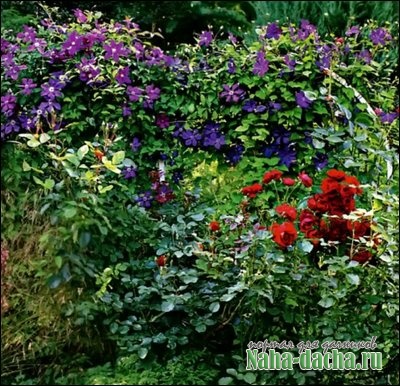 Kак посадить вместе розу и клематис