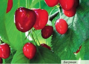 Багряной вишни имеют большую зимостойкость, чем у Владимирской. По внешнему виду -это дерево с округлой густой кроной. Сорт самобесплодный, поэтому нуждается в опылителях. В плодоношение вступает на 3-4 год. Ягоды (универсального использования) тёмно-красные, массой около 3,5 г, мякоть сочная, косточка небольшая. Созревание плодов начинается с конца июля.