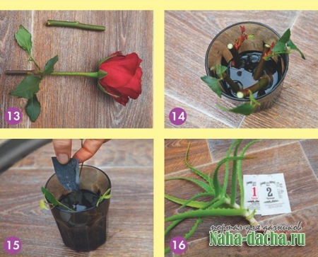 12. Из одной розы у нас получилось четыре черенка. Кстати, считается, что лучше всего укореняются черенки из нижней части стебля.
