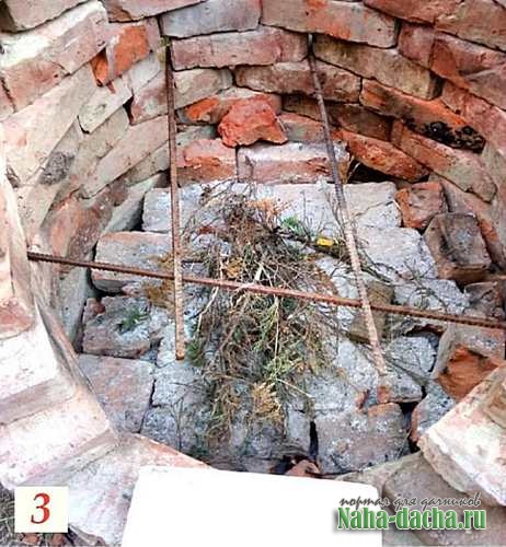 ■ Внутри готовой конструкции на уровне третьего нижнего ряда установил прутья арматуры d 14 мм (при необходимости их можно опустить или поднять) (фото 3). Такая опора отлично выдерживает даже казан.