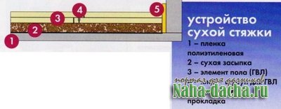 Избежать мокрых процессов при устройстве черновых полов позволят сухие стяжки. Их плюсы очевидны: не нужно ждать просушивания слоя и обеспечивать благоприятный режим схватывания и твердения. Не стоит беспокоиться, «срастется» ли стяжка с основанием. Такой черновой пол не создает значительной нагрузки на перекрытие, одновременно утепляя его. Монтаж занимает считанные часы, работы допустимо вести при пониженных температурах. При правильном монтаже и эксплуатации сухая стяжка прослужит много лет.