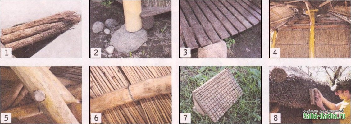 (фото 1). На 1 кв.м крыши понадобилось 10 таких пучков, на 12 кв.м готового сооружения — 120. Конечно, столько заготовить не удалось, потому докупал в строймаркете.