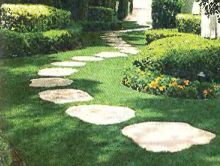 Но есть и более экономные варианты. Например, «долгоиграющие» красивые и недорогие дорожки можно сделать из гранитных высевок, мелкого гравия или речной гальки. Но следите, чтобы размер отдельных камешков не превышал 2 см, иначе по ним неудобно будет ходить. Красиво выглядит дорожка из спилов бревен. Здесь главное - хорошо уплотнить спилы в землю и не забыть насыпать и также уплотнить в щели какого-нибудь уплотнителя - высевку или гальку, что не позволит задерживаться в промежутках между спилами воды.