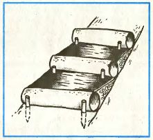 И далее укладывайте таким же способом все остальные бревна-ступени, пока не построите лестницу нужной вам длины. Оставшиеся по бокам лестницы канавы или углубления засыпьте землей и тщательно утрамбуйте.