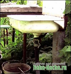 И уж совсем удобно будет пользоваться водопроводом, если сделать простой слив использованной воды. Для этого нужно сливную трубу раковины соединить с куском гофрированной трубы и место соединения обмотать слоем тонкой резины. Резину нужно закрепить несколькими витками медной проволоки. Далее к гофрированной трубе нужно подсоединить или толстую резиновую трубу и отвести ее на полтора-два метра от раковины, или вставить ее в пластиковую трубу подходящих размеров и также отвести подальше от раковины.