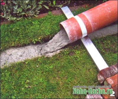 2. Бетон постепенно стек по трубе в траншею, полностью заполнив ее.