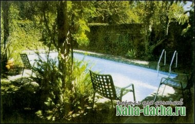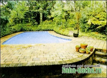 васейн в садуЧасто встречающееся на сегодняшний день расположение бассейна в непосредственной близости к дому имеет большие преимущества. Жарким летним днём хорошо находиться у бассейна в саду или на террасе. Здесь можно приятно проводить досуг за беседой или принимать солнечные ванны. Освежающее купанье возможно при этом без длительного путешествия по саду, близок и зазвонивший в доме телефон.