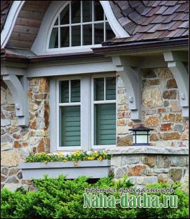 Виниловая коллекцияПревратить деревянный, каркасный или какой-либо другой дом в каменный коттедж можно и вовсе без камня. В продаже имеется цокольный сайдинг, который отлично «изображает» бутовую или кирпичную кладку. Большинство дачников отдают предпочтение виниловой вагонке - пластиковым планкам, как две капли воды похожим на крашеные деревянные струганые шпунтованные доски, то есть настоящую вагонку, используемую для обшивки рубленых домов. Правда, «дощатый» сайдинг монтируют на американский манер - горизонтально (вровень или внахлест с нижележащим рядом). Но допускается и вертикальная раскладка планок. Если уж хозяева настроены пойти своим путем, то им следует рассмотреть различные варианты. Скажем, облицевать стены дома двумя видами цокольного сайдинга или сделать дворовый фасад бревенчатым за счет винилового блокхауса (имитация бревна). Интересные фасадные решения получаются при комбинировании виниловой вагонки разного цвета. В основном на рынке предлагается сайдинг пастельных оттенков. В комплект поставки также включают белые откосы, наличники и угловые планки. Но на рынке присутствует сайдинг ярких, сочных расцветок (малиновый, желтый, шоколадный, фисташковый и др.). Умелое и продуманное сочетание планок разных тонов позволяет создавать удивительные фасадные композиции.