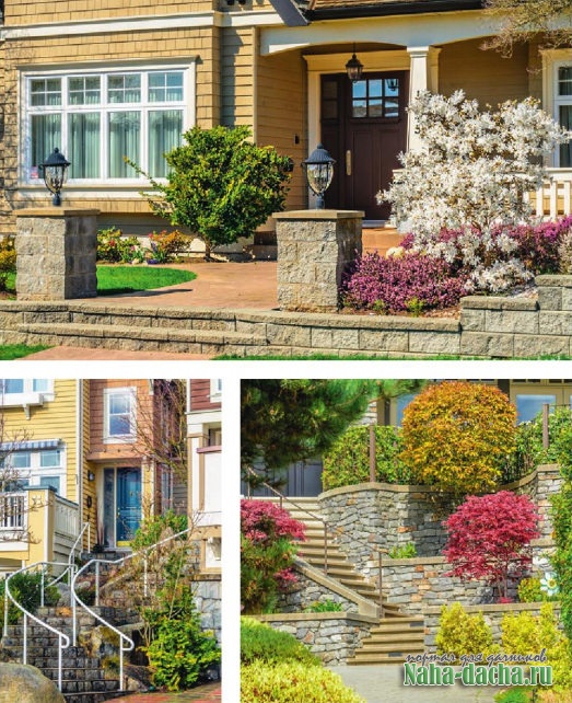 Отделка искусственным камнем фасада дачи ИспользованиеИскусственный камень широко используют для внутренней отделки. С его помощью можно создать интерьер рыцарского замка или охотничьего домика. Искусственный камень в ландшафте -это не только плитка для мощения, но и материал для строительства гротов, прудов и водопадов. Производят и камень для декорирования проблемных мест: люков септиков, скважин, насосного оборудования бассейнов.