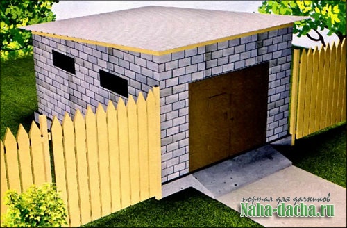 Стены выкладывали из шлакоблоков, но предварительно установили металлические гаражные ворота. Ворота покупали в готовом виде, они стандартные по размерам и по исполнению.