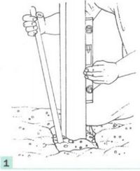 Для закрепления столбов в земле вам потребуется сделать бетонную смесь. В зависимости от условий, ее можно использовать либо в сухом, либо в уже разведенном водой виде. Удобные упаковки с такой смесью, к которой остается только добавить воды, продаются во всех строительных магазинах. Получается немного дороже, чем если бы вы смешивали раствор сами, но для малых количеств эта разница не существенна. Если вы устанавливаете столбы в сырую или влажную землю, вам идеально подойдет сухая смесь—она быстро напитается влагой из почвы; смесь, заранее разведенная водой, в такой ситуации может просто не схватиться. Сухую надо плотно /трамбовать по периметру столба и найти какой-нибудь способ поддерживать столб в вертикальном положении, пока бетон не застынет.