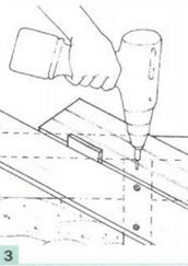 3. К лагам и балкам с помощью утопленных саморезов прикрепите доски настила, оставляя между ними зазор примерно 5 миллиметров (для того чтобы точно выводить зазор, используйте, например, деревянную щепку — это облегчит вам работу). Доски настила должны выступать за обвязку как минимум на 5 сантиметров. Когда все доски будут присверлены, проведите по выступающим концам поперечную линию и пилой обрежьте все лишнее.