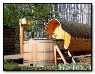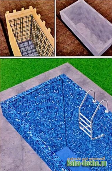 У нас на дачном участке есть баня, а недавно мы сделали рядом с ней небольшую купель, куда наливаем холодную воду и окунаемся в нее noc/je парилки. Вначале выкопали яму 1x2 м и глубиной 1,7 м. Забили в дно б металлических штырей, приварили к ним арматурную сетку, сделанную из таких же штырей, сваренных между собой. Сетка должна быть приподнята над почвой на 5 см.