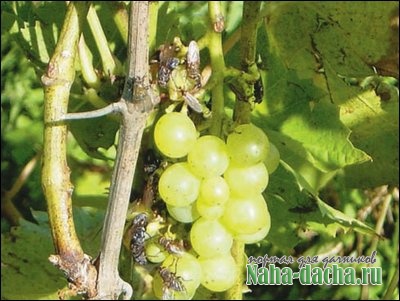 В процессе борьбы с осами также очень важна профилактика оидиума. Это грибное заболевание приводит к растрескиванию ягод, при этом они начинают пахнуть рыбой, что тоже привлекает ос.